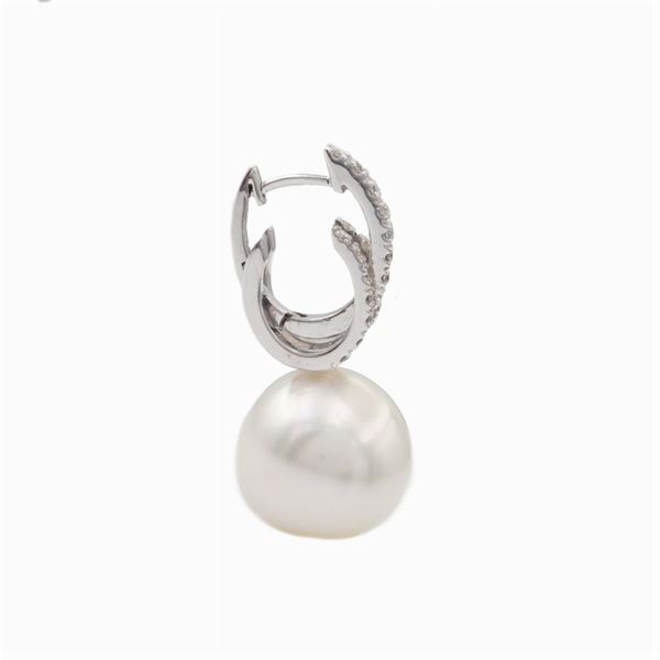 di 14,5 mm. circa sormontati da diamanti taglio brillante ct 0,70 circa, peso 14,5 gr.
