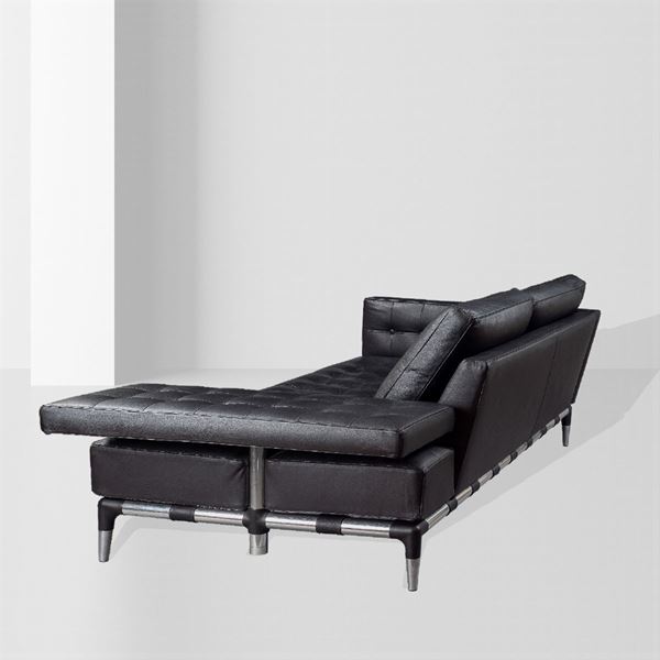 divano a isola 241 Privé, acciaio, rivestimento imbottito in pelle nera, 76x225x98 cm.