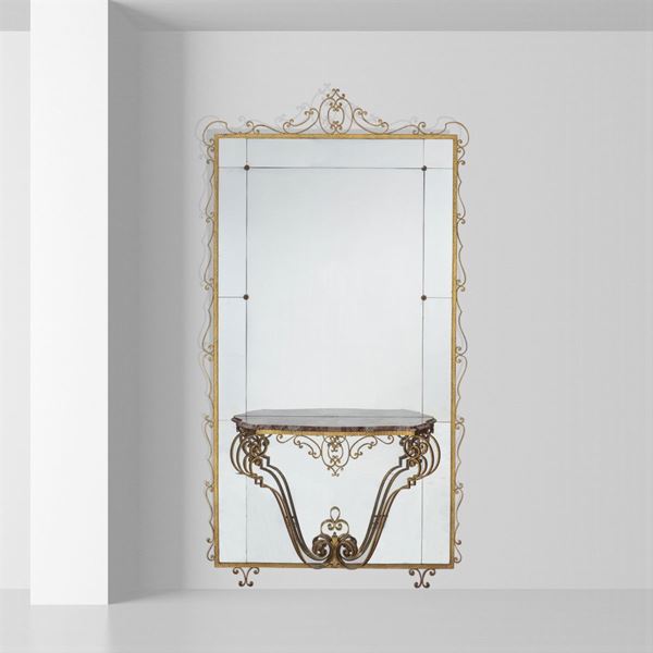 ingresso completo, ferro battuto e dorato, cristallo specchiato e marmo.