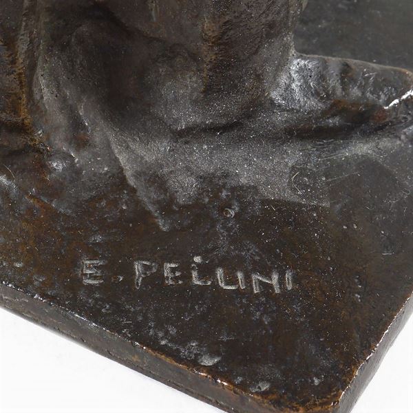 scultura in bronzo brunito raffigurante la maternità, firmata alla base, h. 37,5 cm.