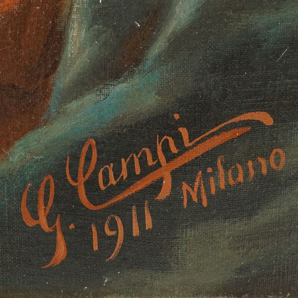 "Madonna con Bambino", olio su tela, firmato G. Campi 1911 Milano, entro cornice, 80x60 cm