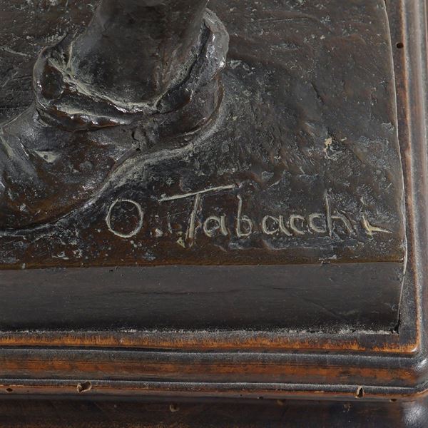 scultura in bronzo brunito raffigurante Michelangelo, fonditore Corrado Betta, firma dello scultore e del fonditore sulla base, 55x18x18 cm.
