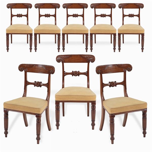 struttura intagliata con motivi vegetali e di volute, sedute imbottite e rivestite in tessuto, lievi usure, h. 87 cm.