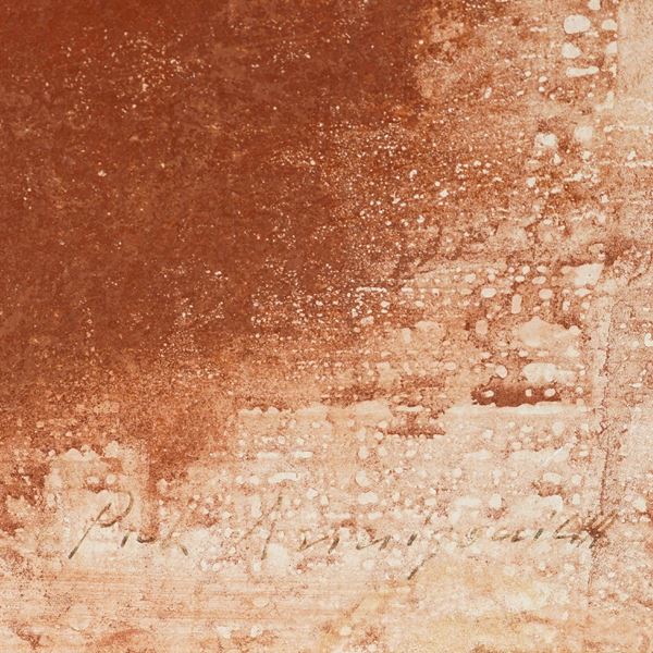 "Testa d'uomo", sanguigna su carta applicata su tavola, firmata in basso a destra, entro cornice, 29x40 cm.