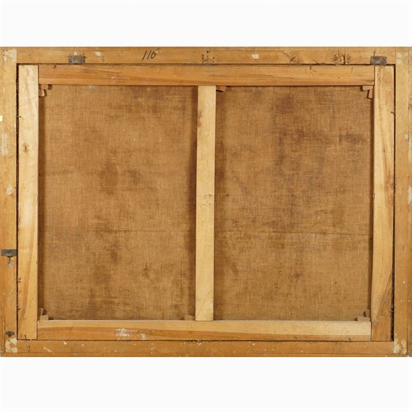 "Le tre età dell'uomo", olio su tela, entro cornice, 123x165 cm.