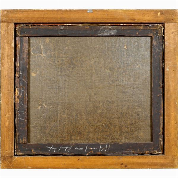 "Veduta di campagna", olio su tela, entro cornice in legno dorato, 48x55 cm.