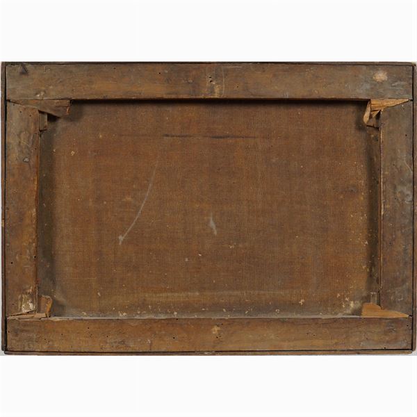 "Paesaggio con rovine", olio su tela, reca firma A. Vertunni, 34x26 cm.