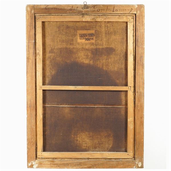 "Ritratto di nobiluomo in maschera", olio su tela, entro cornice in legno dorato, 150x106 cm.