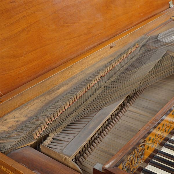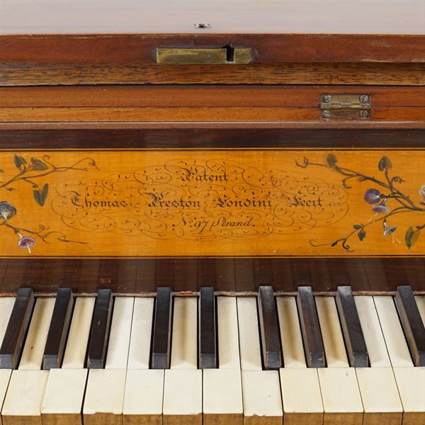 corpo rettangolare filettato in bosso e legni esotici, firmata "Brevetto Thomas Preston Londini Fecit No. 97 Strand, difetti, 86x164x59 cm.