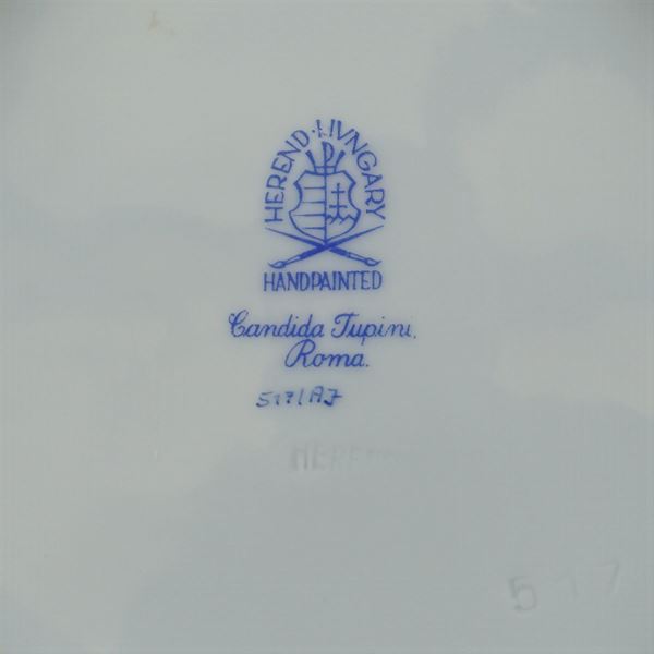 Composto da: 24 piatti piani, 12 piatti fondi, 12 piatti da frutta, 12 piatti da dolce, 12 piatti mezzaluna, 12 cocotte, 12 tazze da brodo con piattini, una zuppiera ovale, una zuppiera circolare, una legumiera, 4 piatti a foglia, 2 piatti da portata, 4 posacenere a foglia, 2 insalatiere, 6 portauovo, 2 porta toast, 2 coppie di saliere, 2 caffettiere di misure diverse, 12 tazzine da caffè con piattini, una zuccheriera