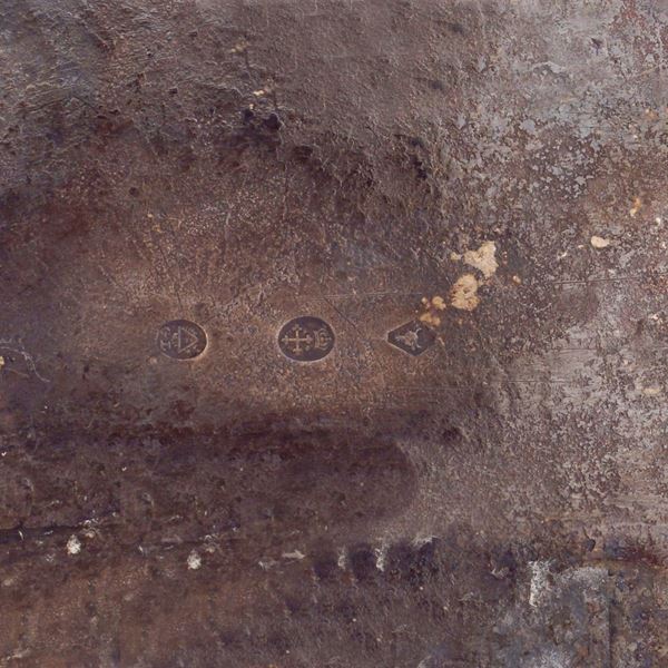 orafo Giobatta Lasagno, Torino, corpi sbalzati e cesellati con motivi floreali e vegetali alternati a delfini mitologici e cariatidi Impero, bottiglie e contenitori in cristallo mancanti, 31x20,5x10 cm., peso 1300 gr.