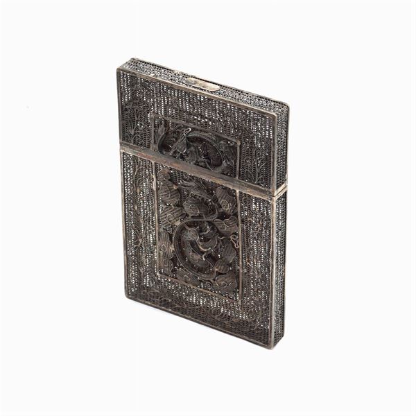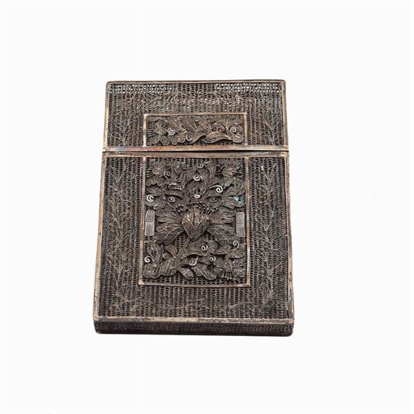 corpo lavorato con motivi vegetali e floreali, lievi difetti, peso 66 gr., 11x7 cm.