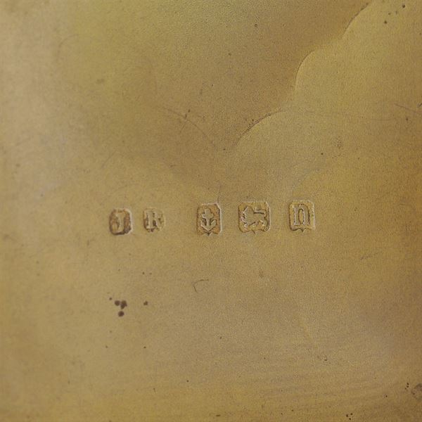 inciso con motivi vegetali a voluta, marchi territoriali e di garanzia impressi all'interno, 1,5x8,5x6 cm., lievi difetti, peso 55 gr.