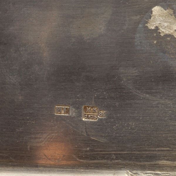 coperchio centrato da una incisione raffigurante una veduta di Mosca, peso 198 gr., 3,5x11x7 cm.