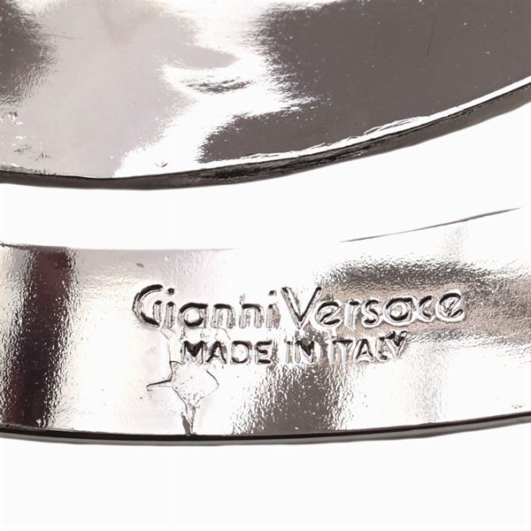 realizzato in metallo argentato a motivo geometrico, diametro 6 cm.