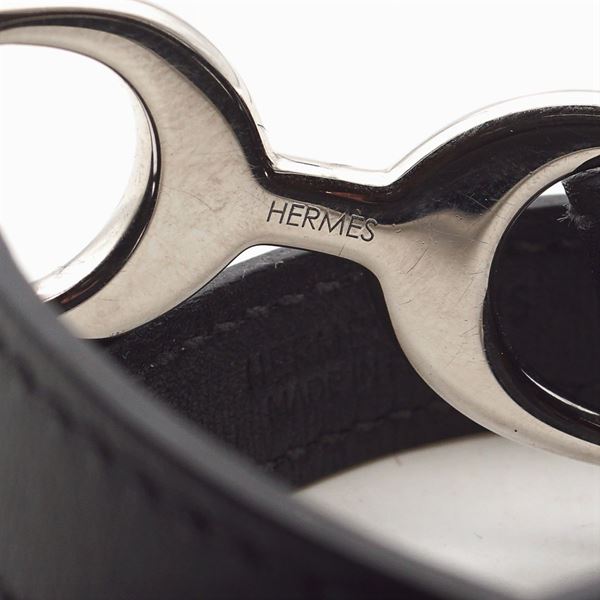 realizzato in pelle nera a doppio giro, chiusura a staffa in metallo placcato palladio