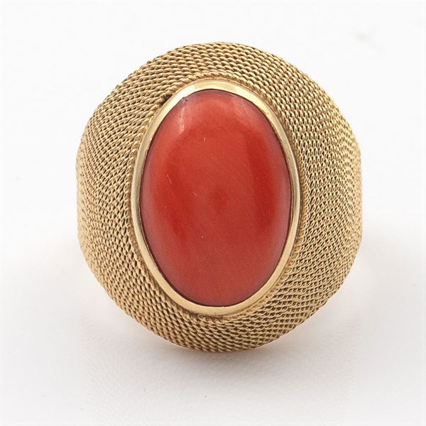 Anello in oro giallo 18kt e corallo rosso