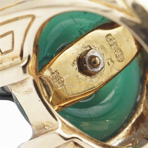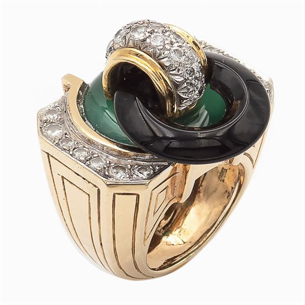 taglio brillante ct 0,90 circa con sezione circolare in giada e in onice nero pendente, misura 11, peso 23,1 gr.