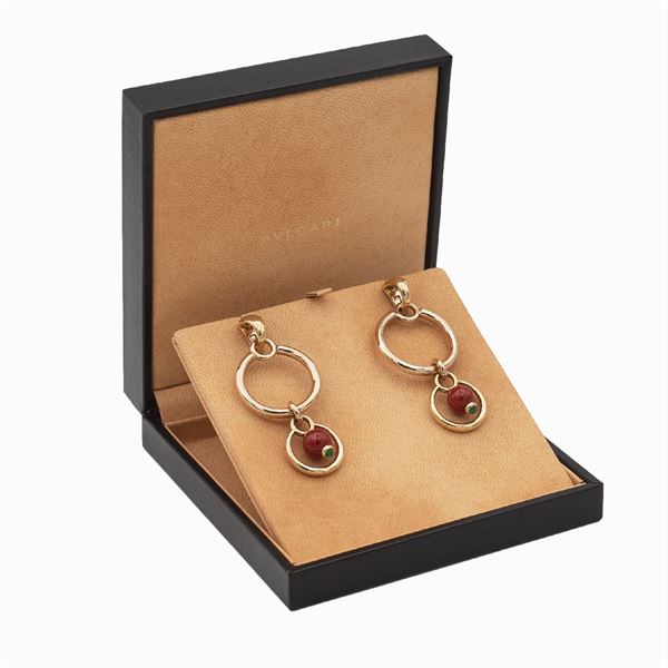 Bulgari, orecchini in oro giallo 18kt e corallo