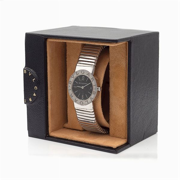 cassa 26 mm. ref. BB26TS - D312715, quadrante nero con indici e numeri arabi, datario ore 3, vetro zaffiro, movimento al quarzo, bracciale tubogas a manetta in acciaio, cassa, quadrante e movimento firmati.