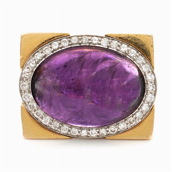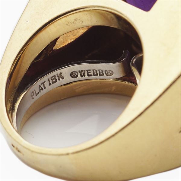 David Webb, anello a ponte in oro giallo e bianco 18kt e ametista