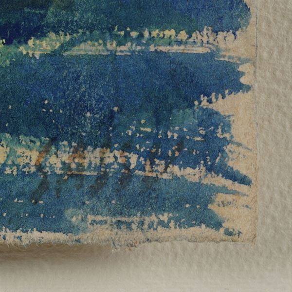 "Paesaggio notturno", acquarello su carta, firmato in basso a destra, entro cornice, 29x21 cm.