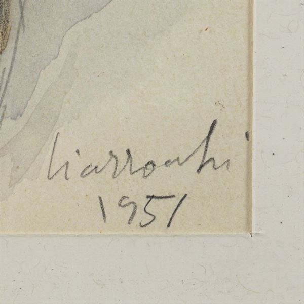 " Senza titolo", 1951. matita e acquarello su carta, firmato e datato in basso a destra, entro cornice, 35x23 cm.
