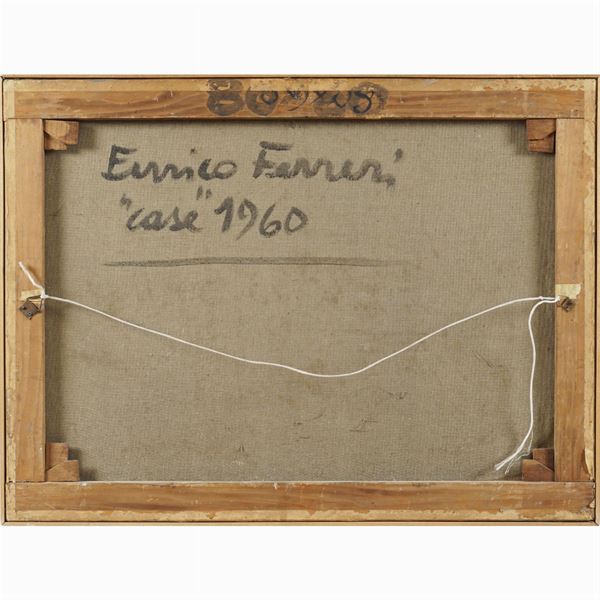 "Case", 1960, olio su tela, firmato, datato e titolato sul retro, entro cornice, 60x80 cm.