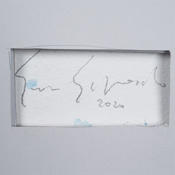 "Senza titolo", 2020, tecnica mista e applicazioni su cartone, firmato e datato sul retro, entro cornice.