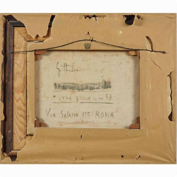 "Urna greca", olio su tela, firmato e titolato sul retro, entro cornice, 35x45 cm.