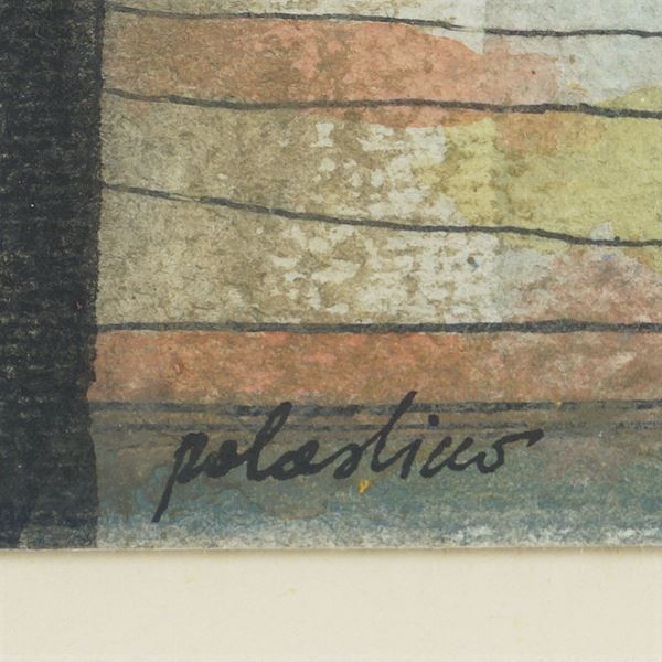 "Senza titolo", tecnica mista su carta, firmata in basso al centro, entro cornice, 17,5x12 cm.
