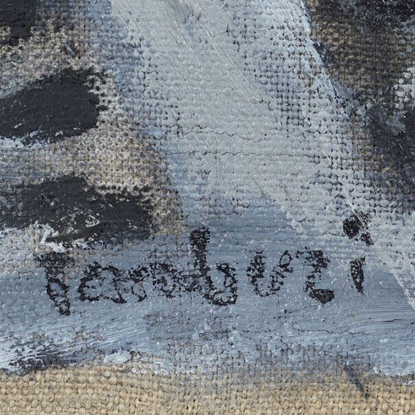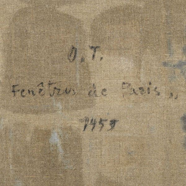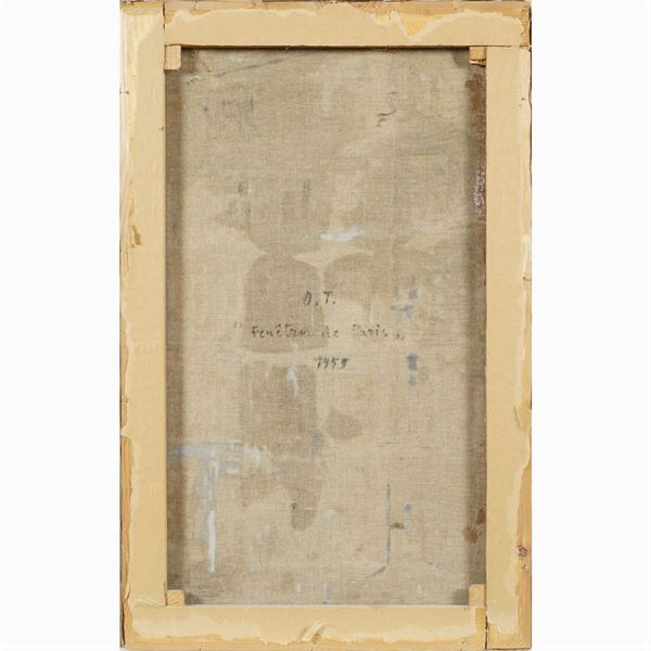 "Fenêtre de Paris", 1953, olio su tela, firmato in basso a sinistra, titolato, datato e siglato O.T. sul retro, entro cornice, 72x45 cm.