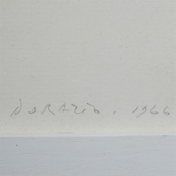 "Senza titolo", 1966, pastello su carta applicata su tela, firmato in basso a destra, entro cornice, 26x33 cm.