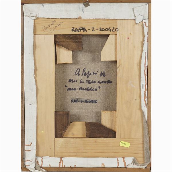 "Alla ricerca", 2006, olio su tela, firmato, datato e titolato sul retro, entro cornice, 40x30 cm.