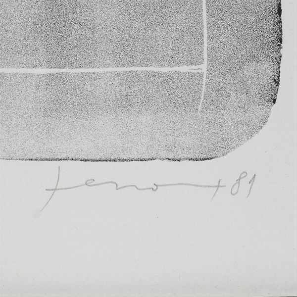 "Autoritratto con bucranio", 1981, litografia, es. 5/5, firmata in basso a destra, entro cornice, 34x47 cm.