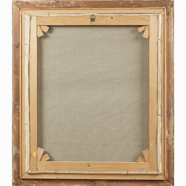 "Donna alla specchio", 1983, olio su tela, firmato e datato in basso a destra, entro cornice, 76x65 cm.