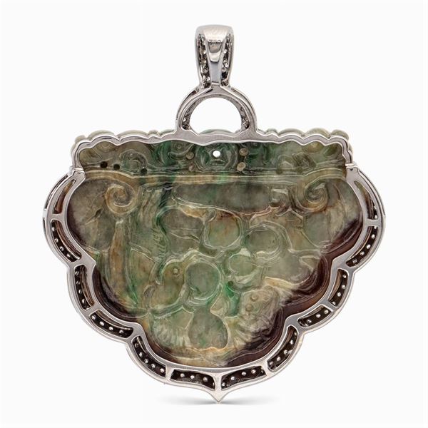 Pendente amuleto in giada scolpita a motivi naturalistici