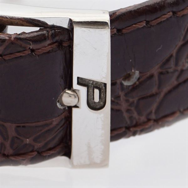 .in oro bianco 18kt, cassa tonda 32 mm. -  ref. 13604 - 117624, ghiera Clou de Paris, quadrante argentato guilloché, datario ore 3, vetro zaffiro, movimento meccanico a carica automatica, cinturino in pelle con fibbia originale in oro bianco 18kt