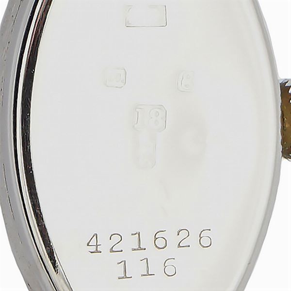 in oro bianco 18kt, cassa ovale 30x14,5 mm. ref. 421626 - 116 con incastonate rose di diamante, quadrante argentato con numeri arabi, lievi difetti, movimento meccanico a carica manuale, calibro AS 475,