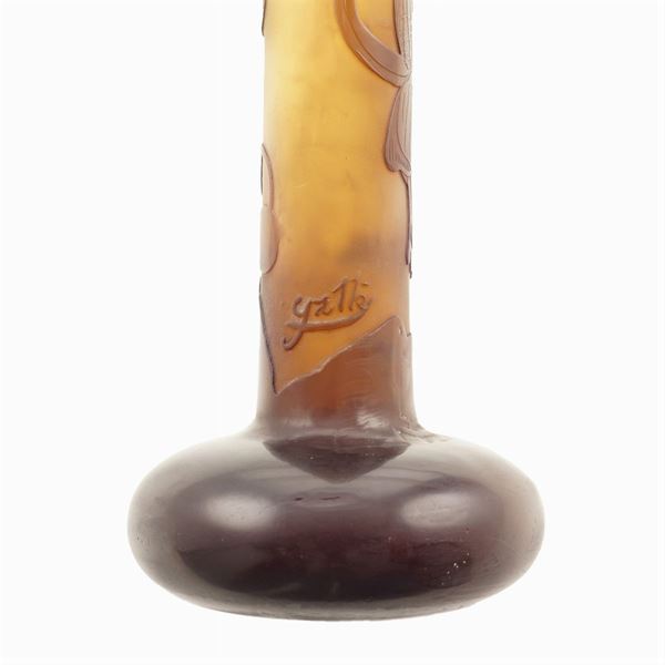 h. 29 cm.vaso in vetro a doppio strato con decoro floreale, firma a cammeo