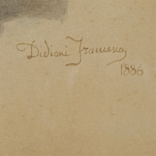 27,5x21 cm."Ritratto maschile", 1886, matita e acquarello su carta, firmato e datato in basso a destra, entro cornice