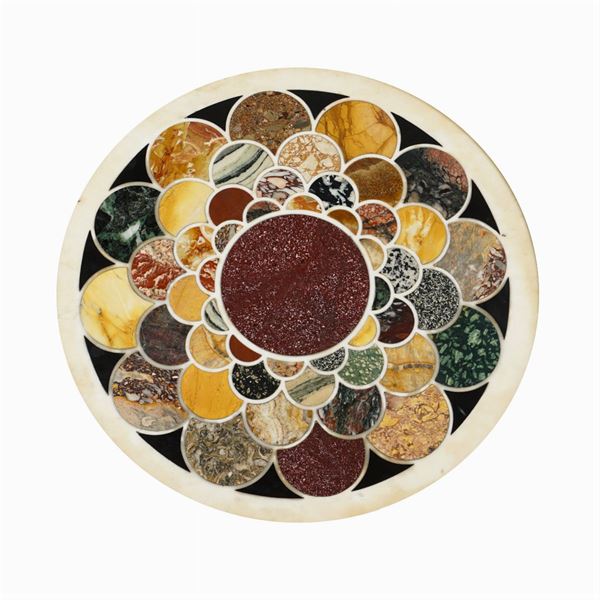 83x57 cm.piano in marmo poggiante su base a tripode in legno dorato ed intagliato con motivi floreali e vegetali