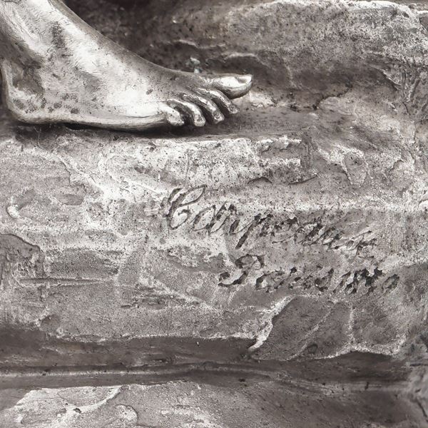 peso 4580 gr.scultura in argento raffigurante una scena mitologica, poggiante su base ovale in legno, 40x28x15 cm.