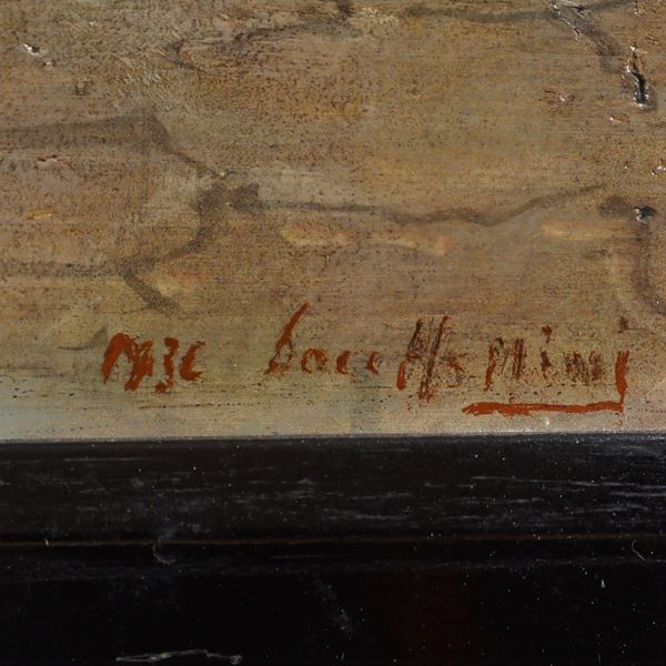 31,5x47,5"La sosta", olio su tavola, entro cornice