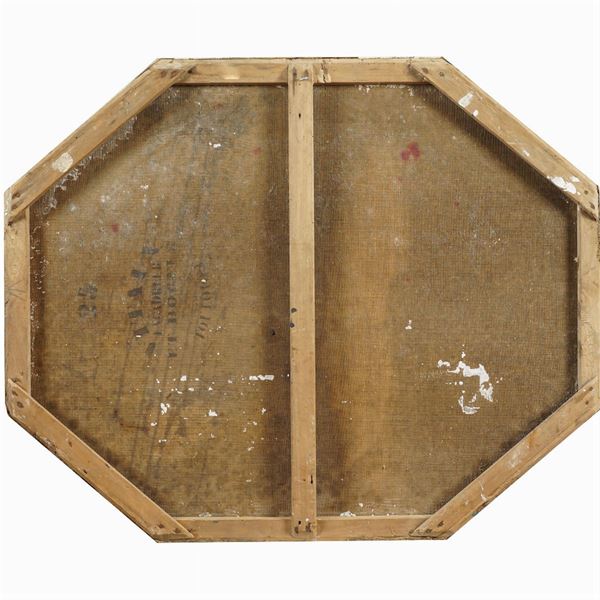 "Bimbi sulla spiaggia", olio su tela di forma ottagonale, difetti