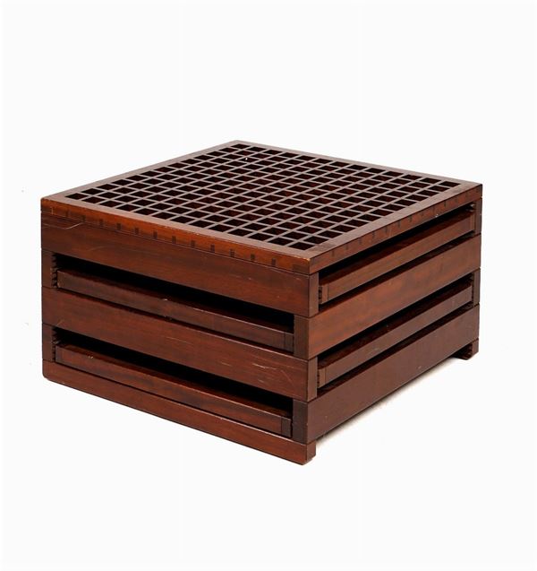 31x55x55 cm.tavolino con piani scorrevoli mod. Tetra, legno e laminato plastico