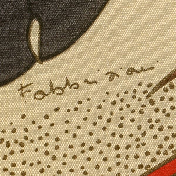 88x140 cm.pannello in tessuto, entro cornice, firmato, usure