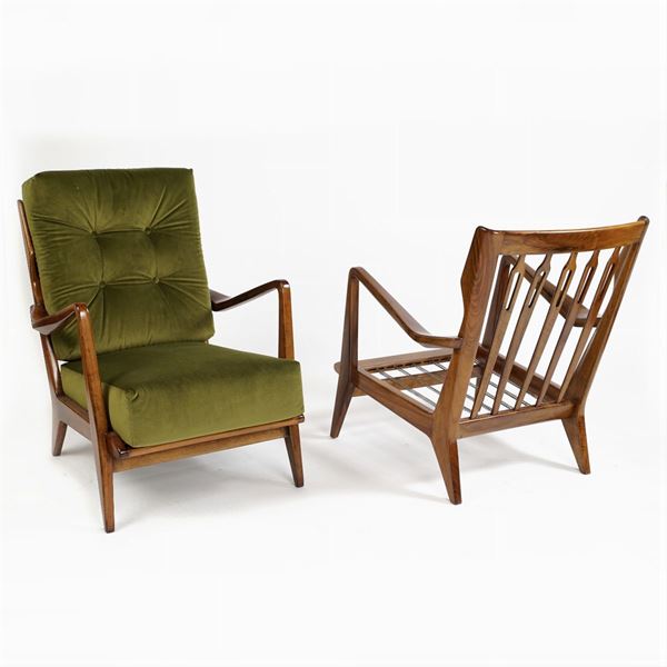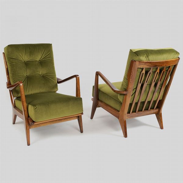 84x65x75 cm.coppia di poltrone mod. 516 in legno e tessuto imbottito