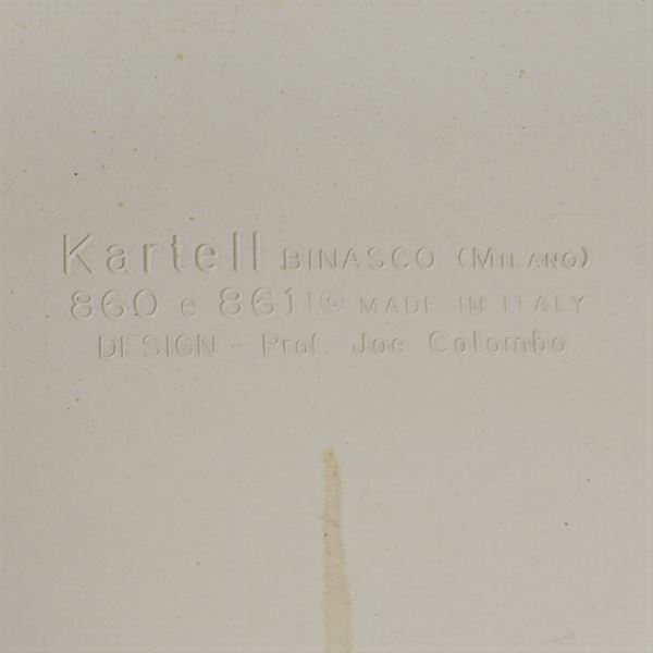 64x48x43 cm.coppia di sedie mod. 861, in termoplastica bianca, marchio della produzione, usure