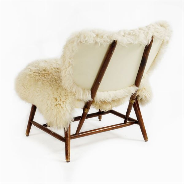 66x66x70 cm.poltrona in legno rivestita in lana di pecora